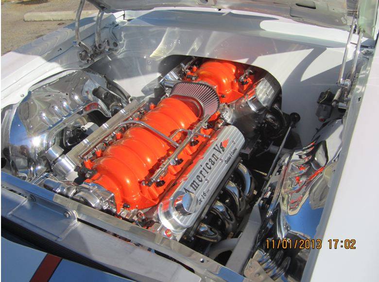 Twin 427 (LSX-7.0) Chevy Engines = 854 150 150 HP NOS System per Engine + 600 = 750 x 2 = 1,500 HP, Corvette Transaxle- B&M Street Bandit, Quad Stainless 3” Flowmaster Exhaust, AMD Aluminum/ Steel Sheet Metal, Wilwood Road Racing 6 Piston Brakes, Art Morrison Ent. - Custom Frame, AutoRad custom two in one High Capacity Radiator, Grimes Twister Engines Marine Coupling system